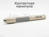 ► Контактная манипула – обеспечивает более сильное воздействие на меньшей площади, и потому оптимальна для обработки локальных участков (средняя удельная мощность -- до 150 Вт/см2). Работает в монополярном режиме. Специальная конструкция с «плавающим» рабочим электродом обеспечивает удобство и безопасность в работе. Сфера применения аналогична бесконтактной манипуле, в особенности -- коррекция отдельных морщин, локальное уменьшение/удаление купероза и сосудистых «звёздочек».