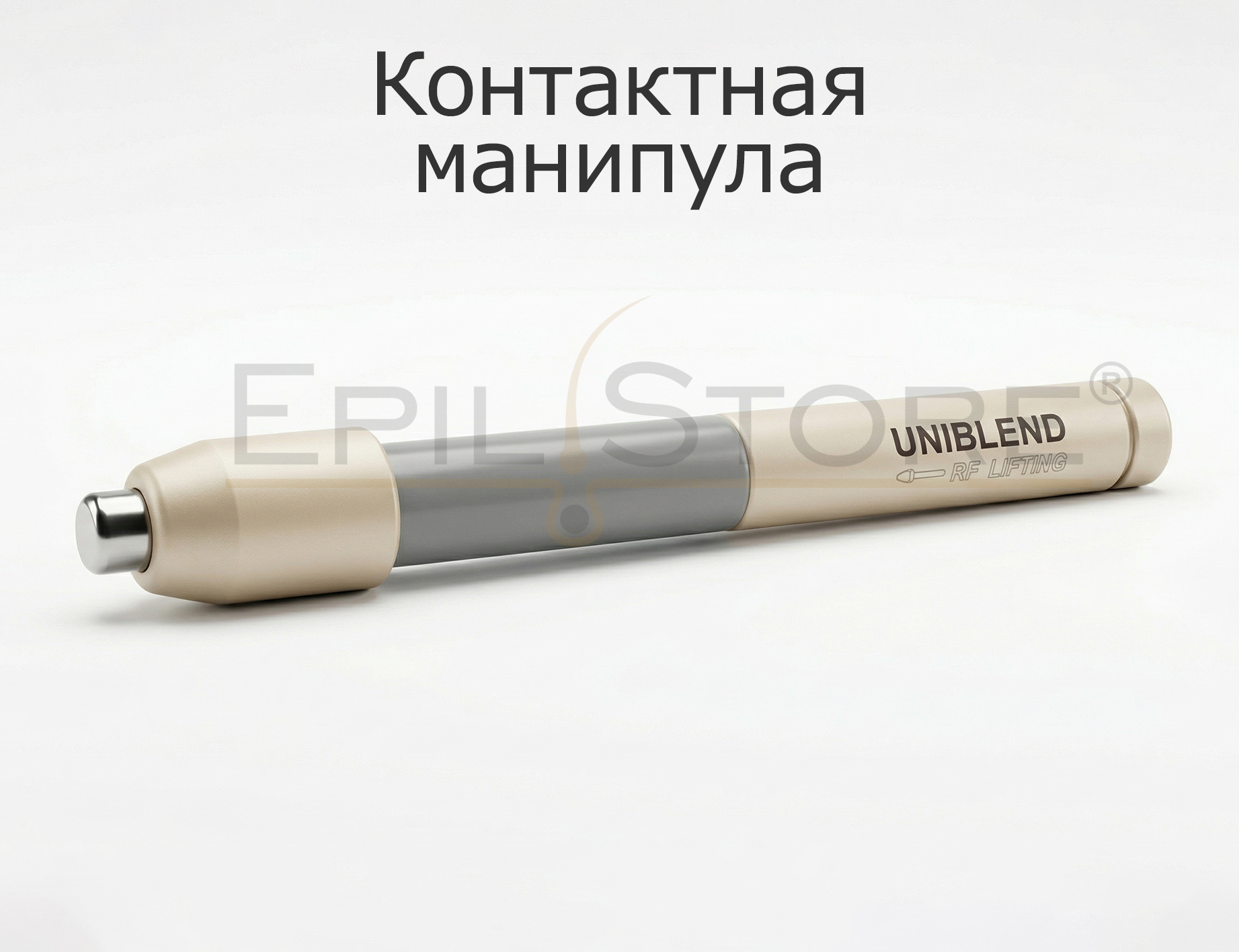 RF (Radio Frequency) лифтинг – косметологический метод, основанный на воздействии на кожу переменного высокочастотного тока. За счёт высокой частоты ток оказывает тепловое действие, нагревая кожу в области обработки. Выбор электрических параметров (мощность, частота тока, длительность воздействия) и конструкции манипулы, пропускающей ток через кожу, позволяет тонко регулировать достигаемый эффект. Это принципиально отличает RF лифтинг от простого нагрева ткани прикладыванием источника тепла («грелки»). Совместим с эпиляторами Uniblend PLUS. В комплекте провод с BNC-разъемом для подключения к эпилятору.
