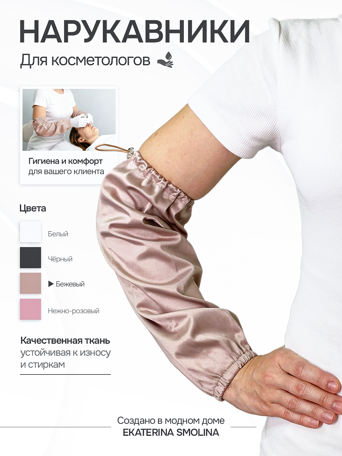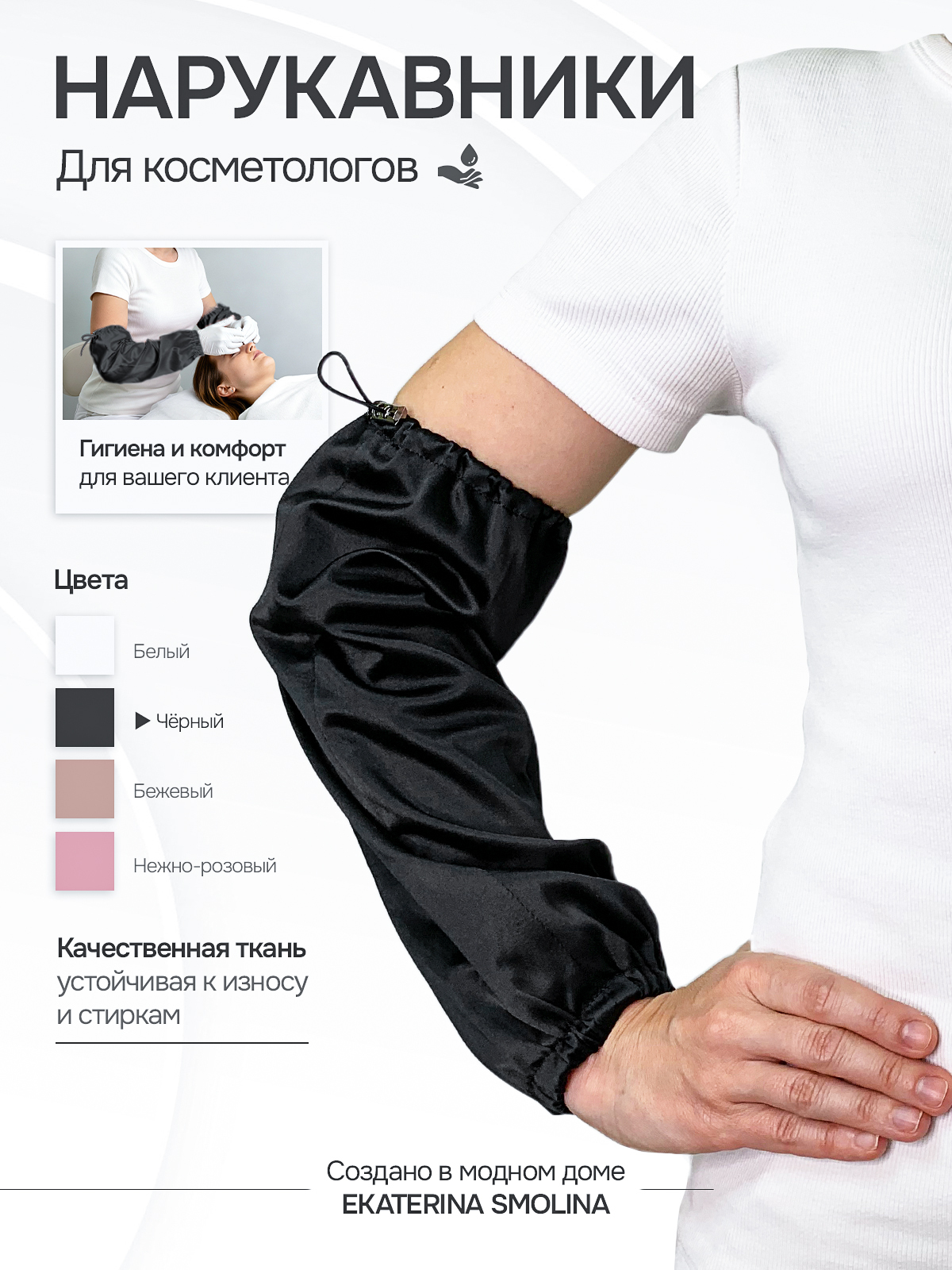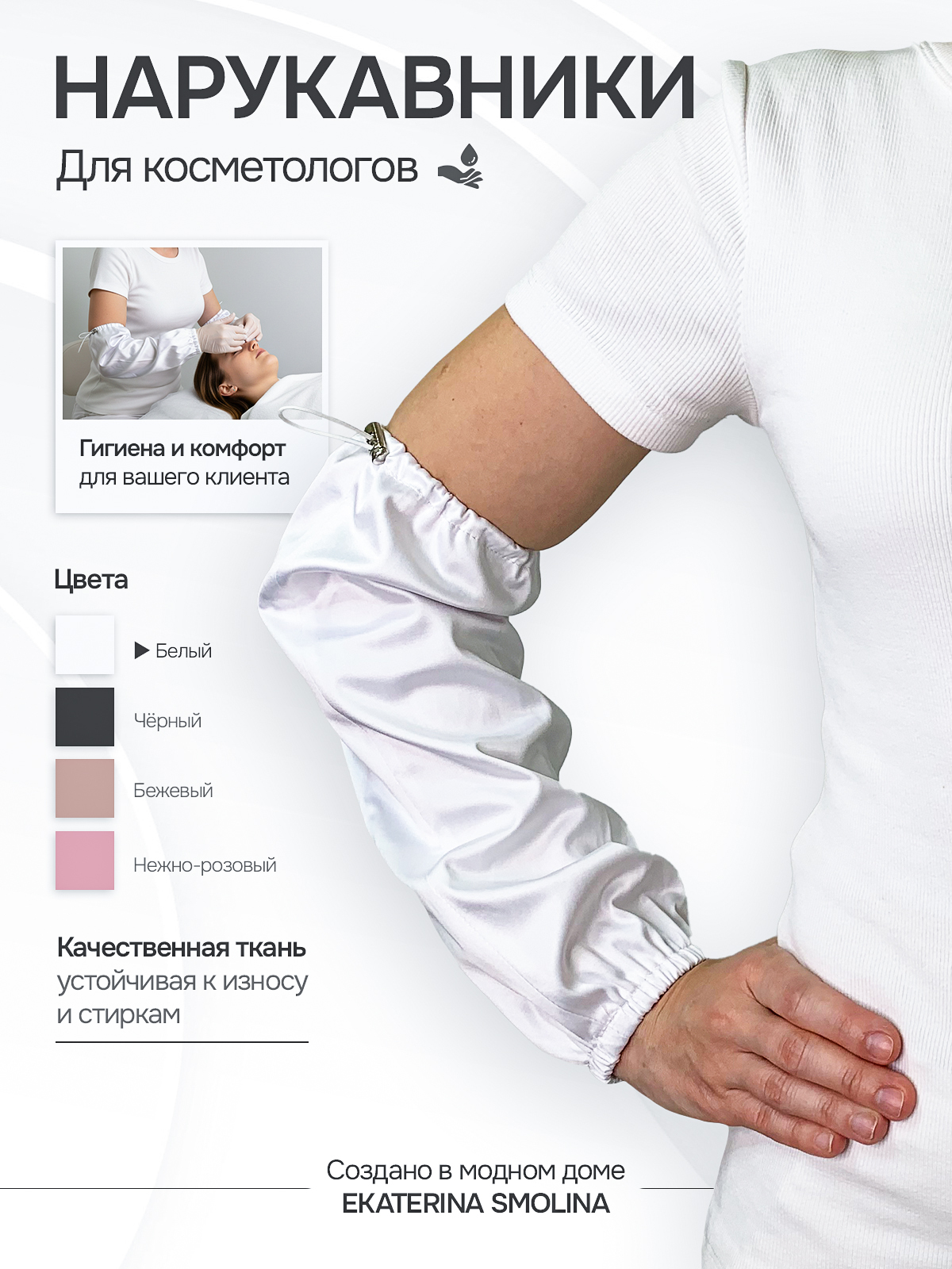 Эксклюзивные нарукавники для специалистов по электроэпиляции и косметологов смежных направлений от Модного дома Ekaterina Smolina.